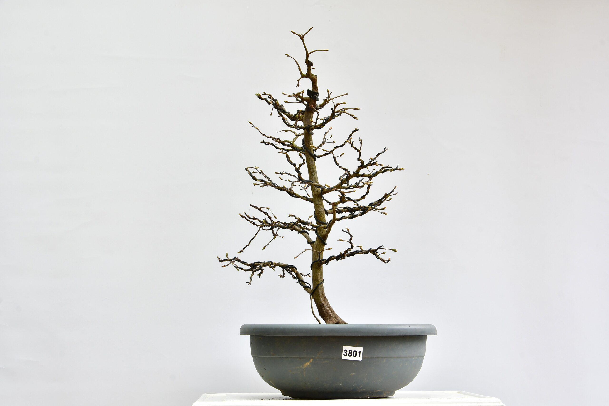Diese heimische Buche in frei aufrechter Form wurde über Jahre für die Gestaltung vorbereitet und ist komplett eingedrahtet. Schöne Verjüngung und ausgewogene Verzweigung.