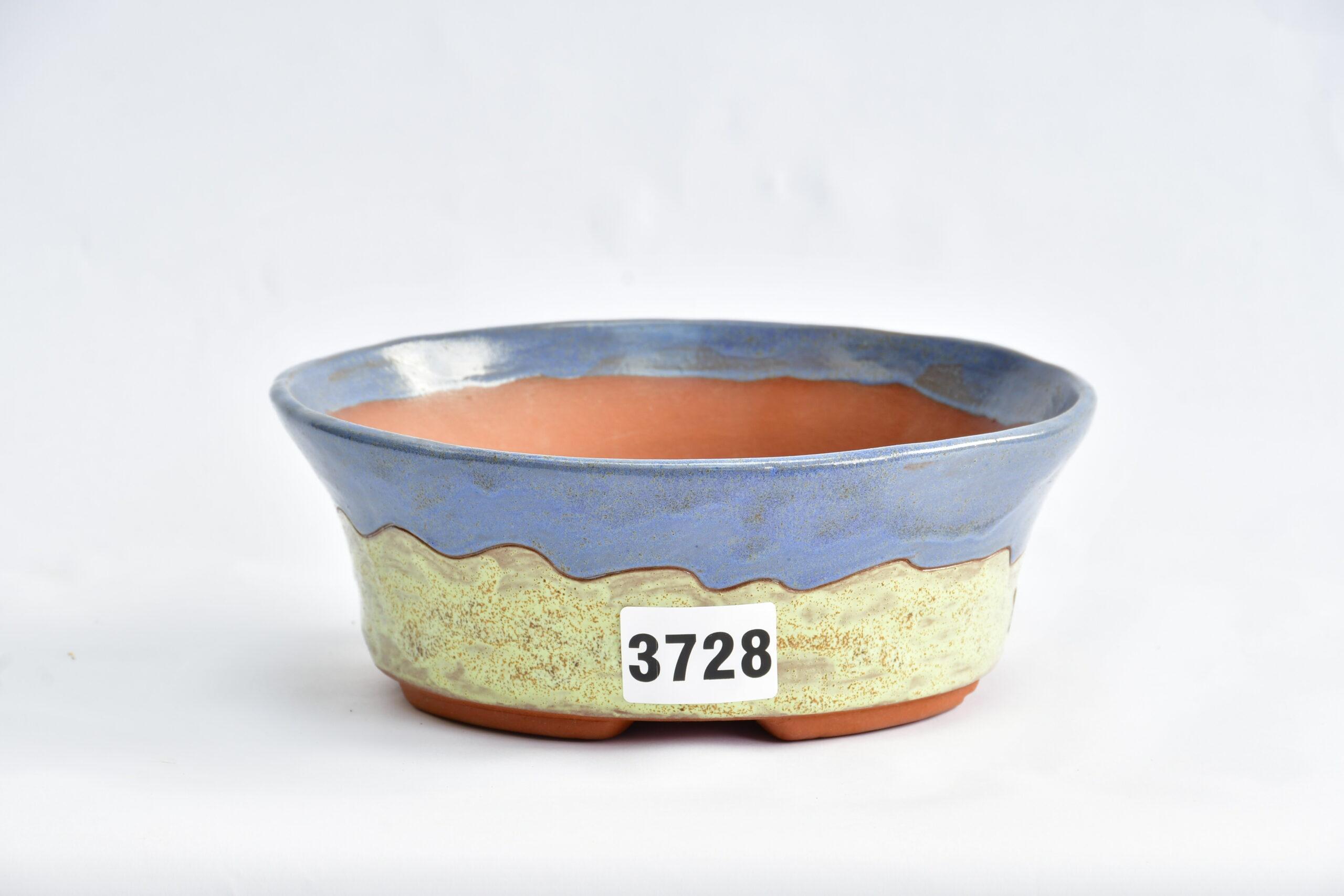 Die blaue, beige Glasur ist auch für Beistellpflanzen gut geeignet und stellt eine Rarität dar