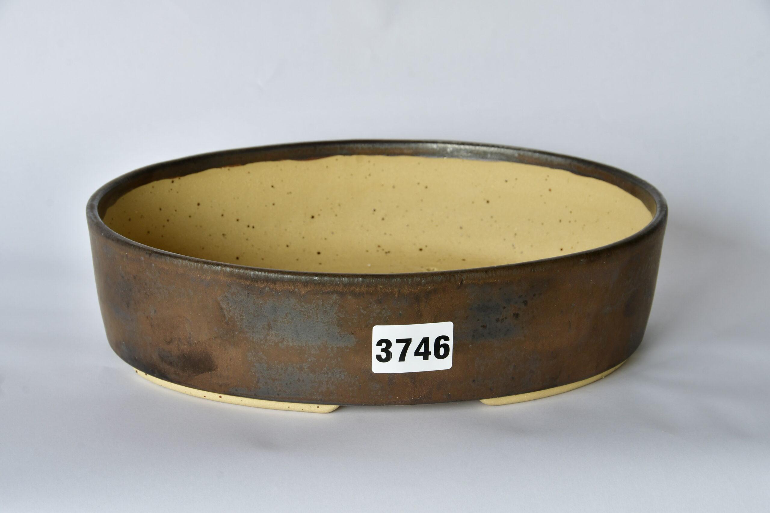 Diese ovale Schale mit anthraziter Glasur ist ein guter Kontrast für alle Acer, Kastanien und Larix Bäume