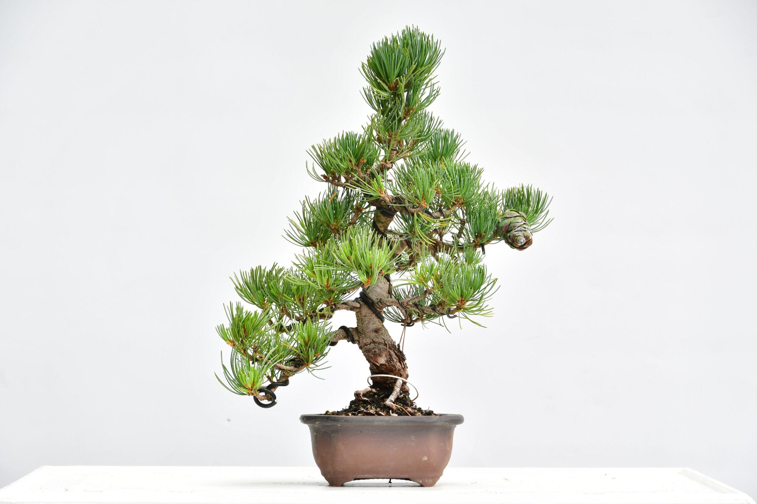 Japanische Mädchenkiefer mit Fruchtsätzen und leichter Majogi Form