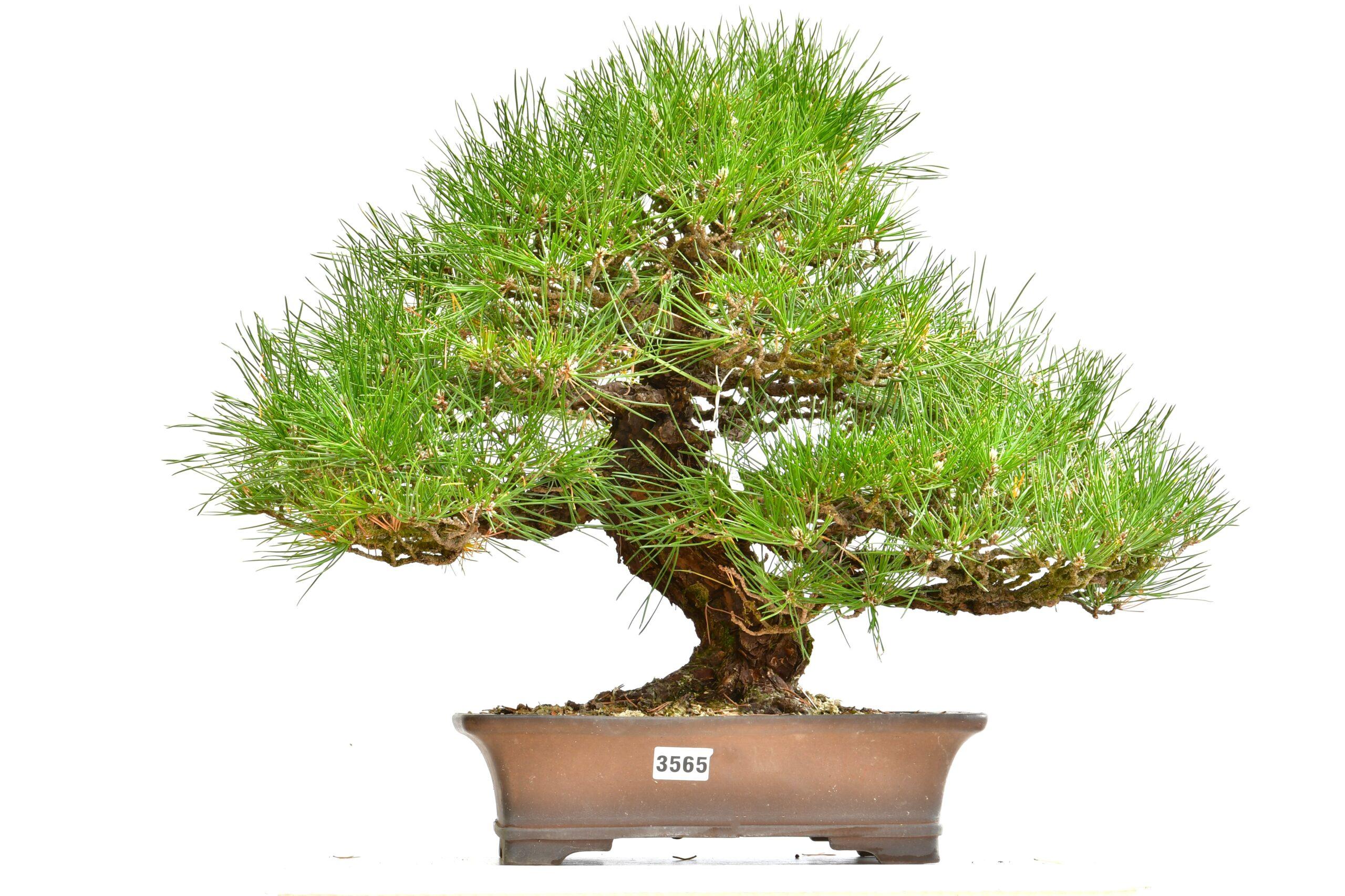 Sehr ausdrucksstarke japanische Kiefer in Majogi Form und alter poriger Rinde in Tokoname Schale.