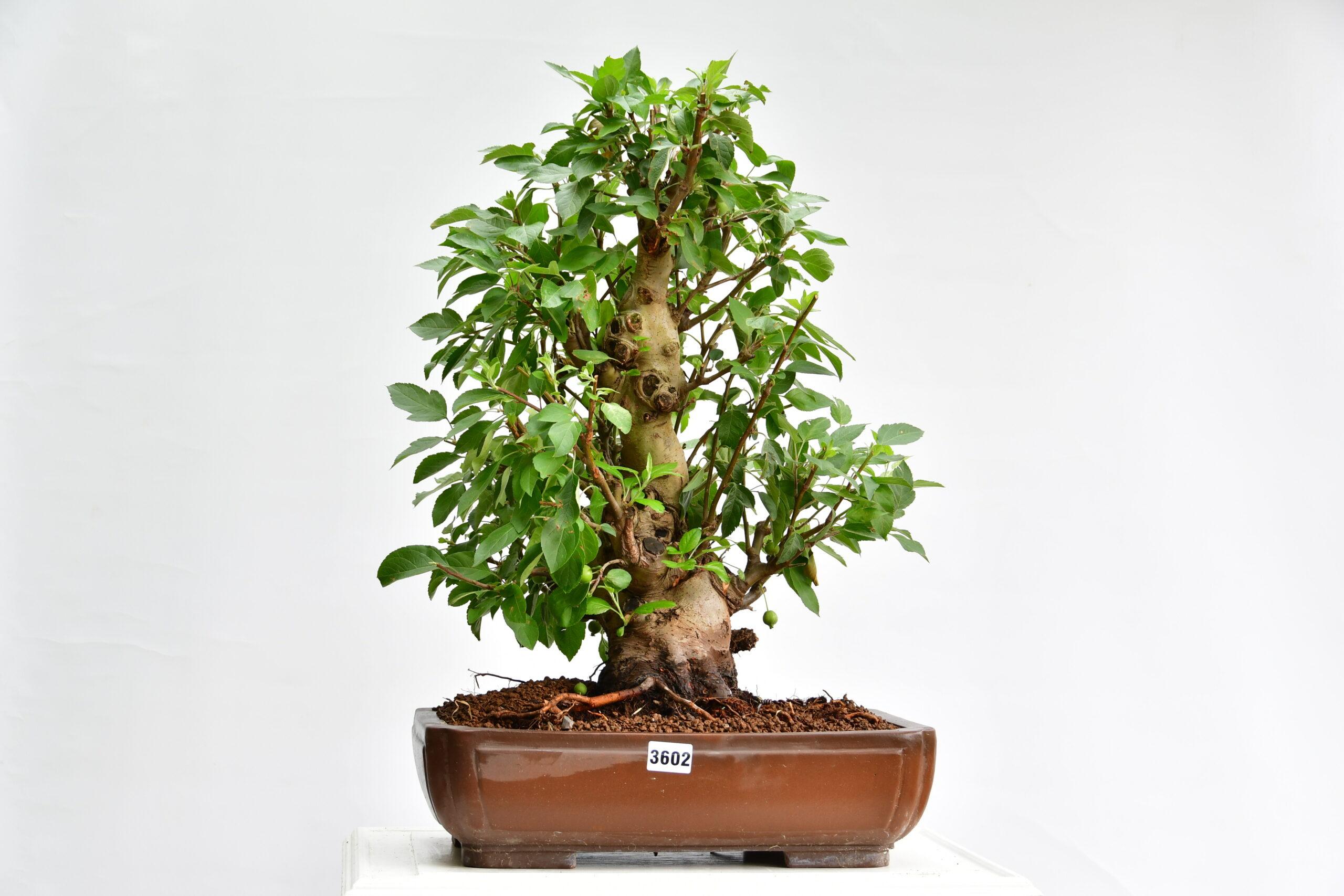 Blühender, früchtetragender Baum mit tollem Nebari und schöner Verjüngung am ganzen Stamm. Der Baum wurde in einer Bonsai Gärtnerei in Spanien produziert und zählt zu den ältesten dieser Zucht